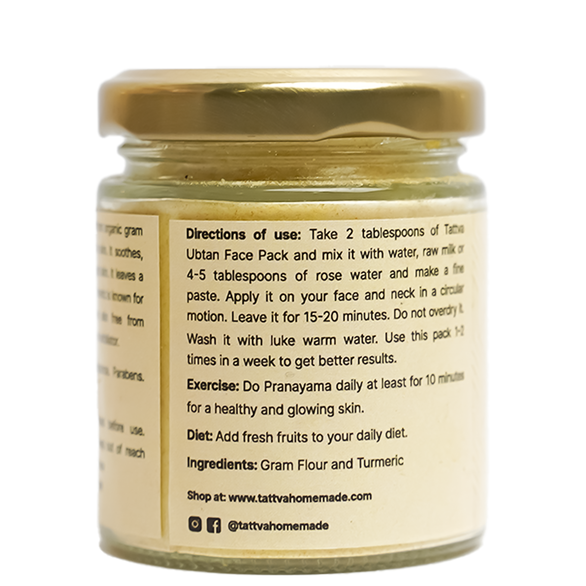 Tattva Ubtan Face Pack is made with organic gram flour and turmeric - nothing artificial, nothing hidden.